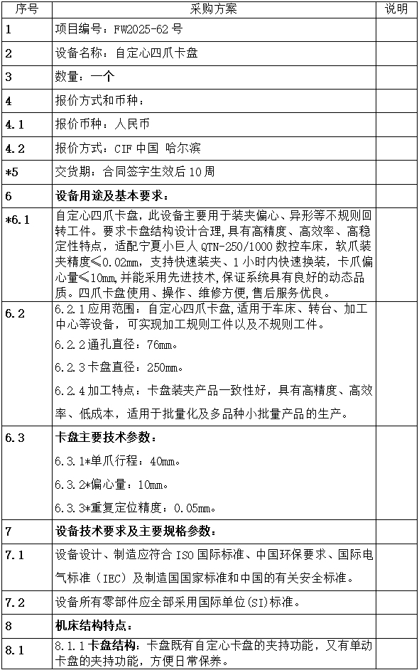 1.2 項(xiàng)目名稱:哈量公司技術(shù)中心四爪卡盤采購項(xiàng)目